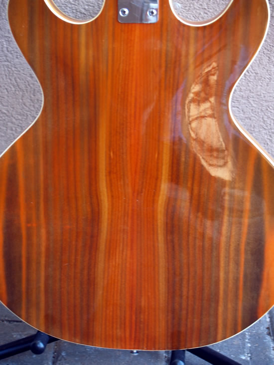 The frets show a small amount of wear, but very playable. The only issue that I really sticks out is that the back of the neck was drilled for a strap button years ago and then redrilled about an inch higher for another. The original hole was filled with wood putty and a dot of clear coat. Looks good and does not effect the playability or the structural quality of the guitar. Other than this, this is a great guitar!