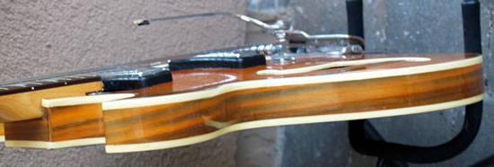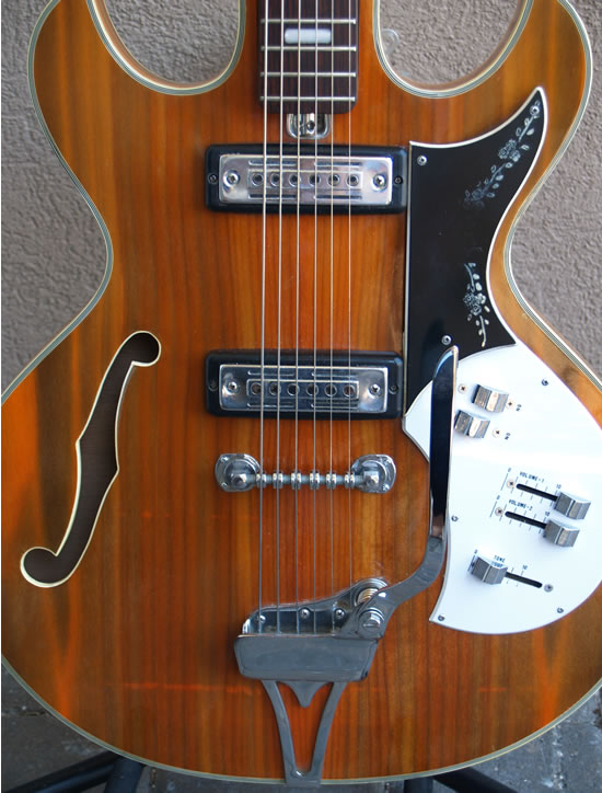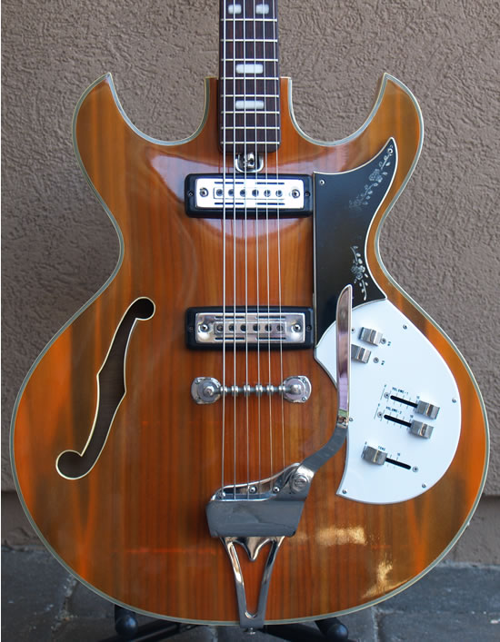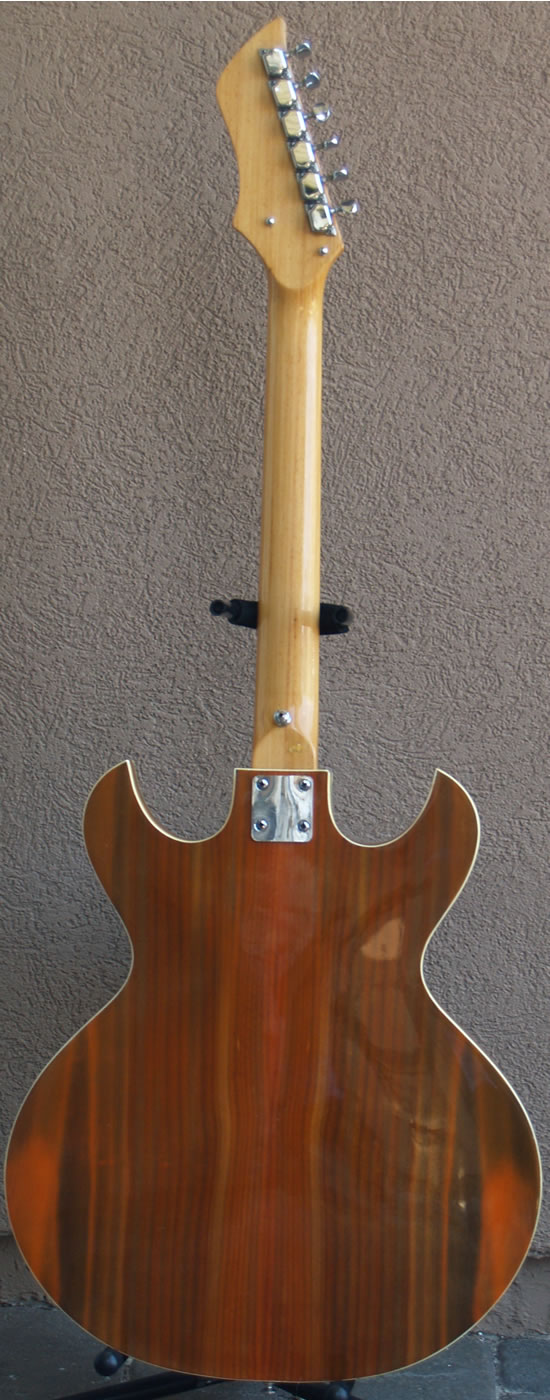 I truly hate to part with this extremely rare, beautiful vintage Kay guitar from the late 60's, early 70's. This guitar was Kay's response to the Fender Wildwood series guitars of the same era. The guitar is in amazing condition. The body is mostly free of any dings and wear (nothing that you can see from more than a foot away- any "dings" are in the surface and do not go deeper than the very top finish). This guitar is strung with flatwound 12's and the neck has been adjusted (the neck was shimmed- this is very normal for any guitar- for the correct angle of the flatwounds and the truss rod works well) for good, playable action. The flatwounds help make this a beautiful sounding jazz box. The electronics work great, you have to love the "faders" tuners hold nicely. Chrome is in great shape. This guitar has aged extremely well and has a lifetime of use ahead.